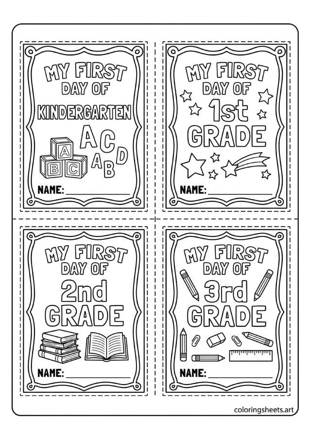 First Day of School Grade Signs Coloring Page – K 1st 2nd 3rd