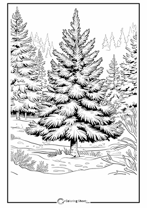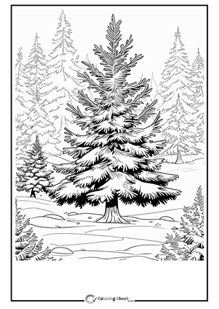This beautiful pine tree is heavily laden with fresh snow. A perfect coloring page for celebrating the beauty of winter.