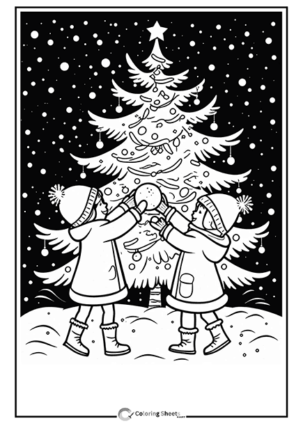 The magic of Christmas is in the making! Color these two children as they place the final, perfect ornament on the tree.