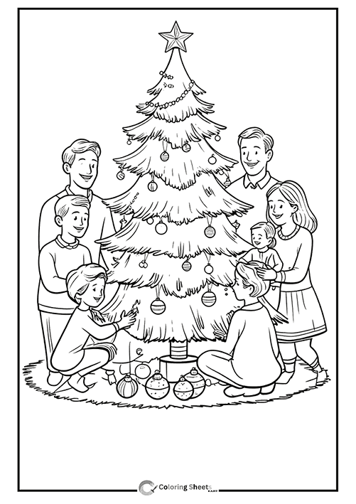 The best holiday memories are made together. Color this heartwarming scene of a family joyfully decorating their Christmas tree.